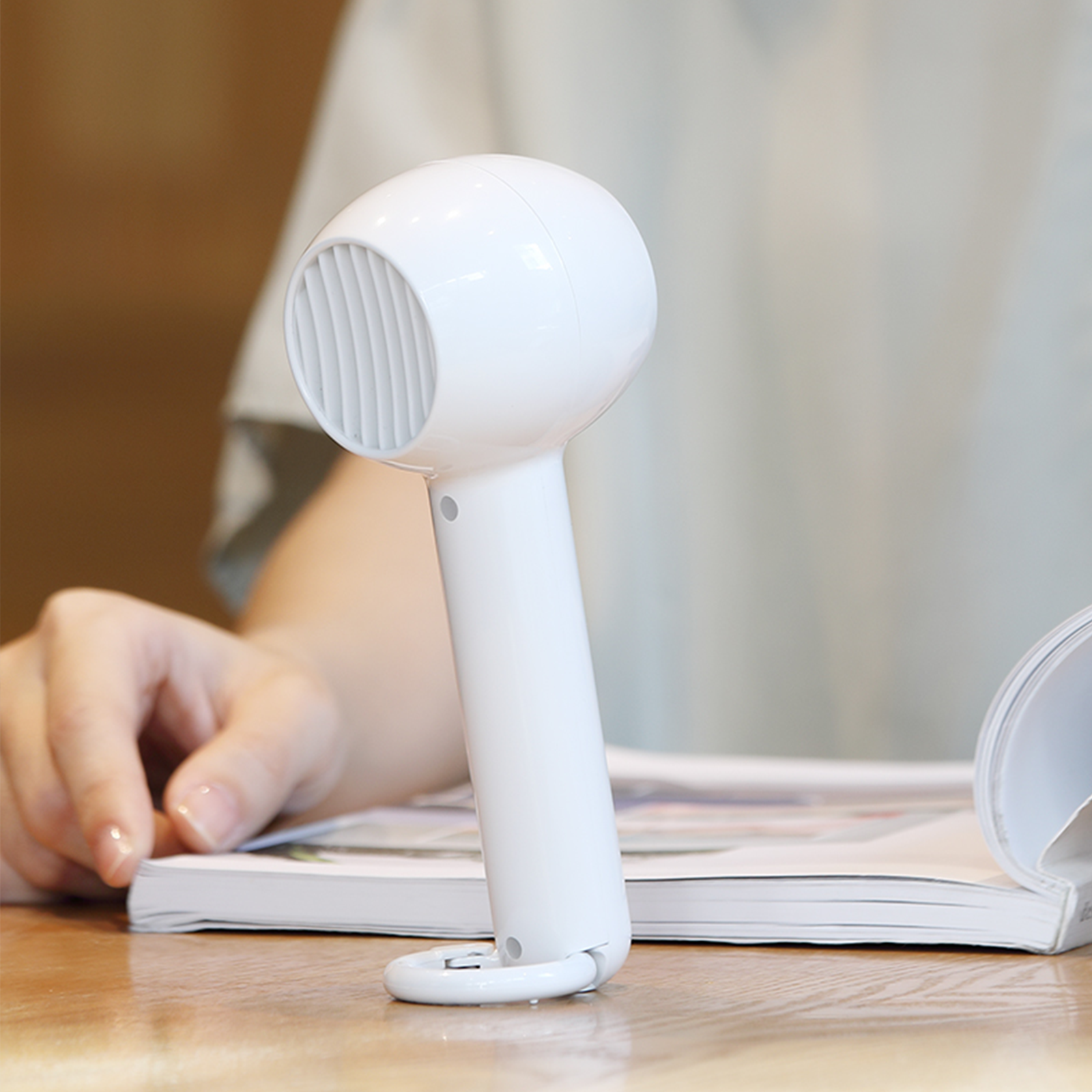 With the special carabiner ring base Design, the mini USB fan can be placed stably on the table works like a table fan at home and office.