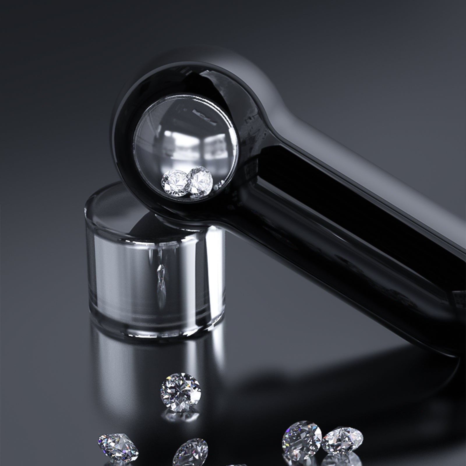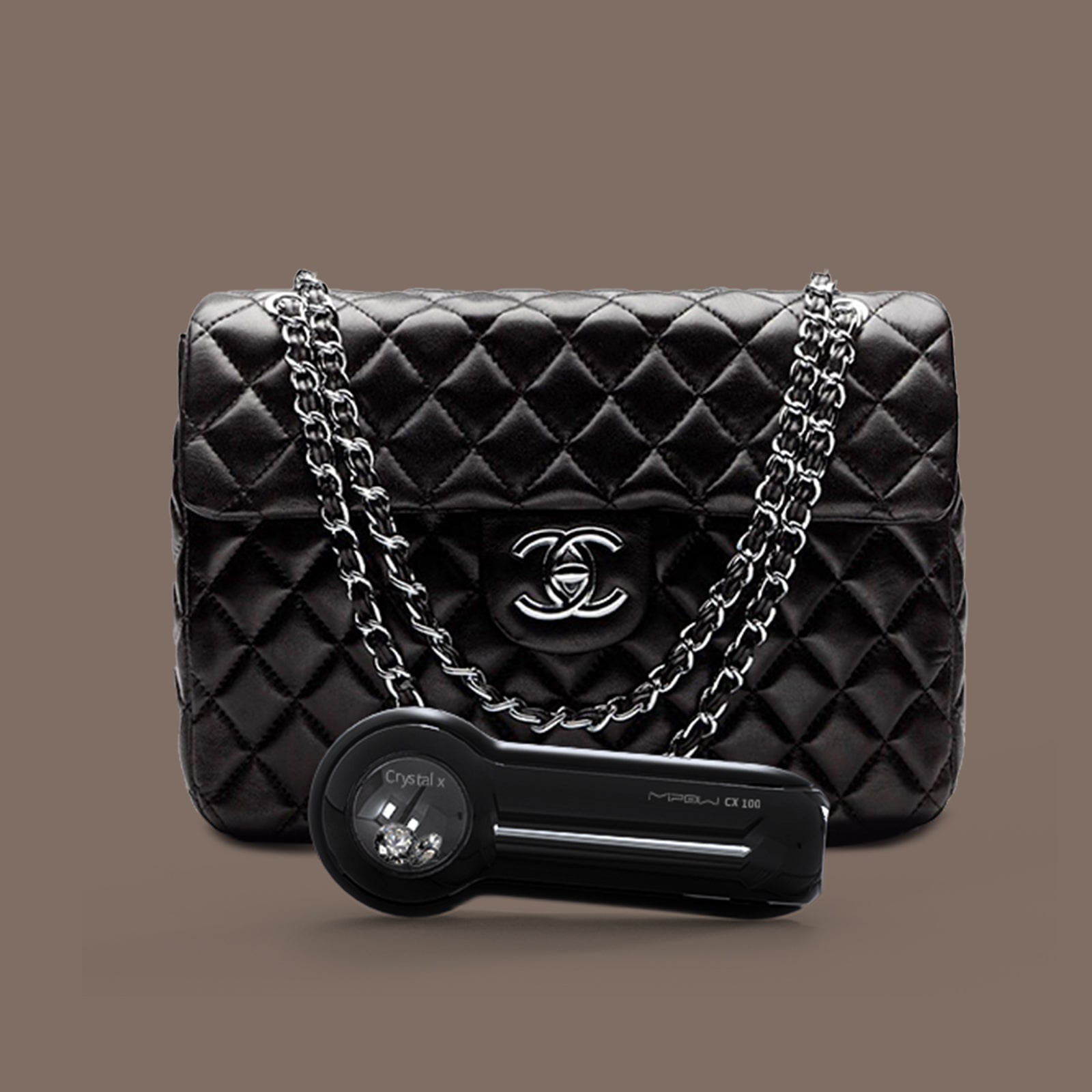 Two Shiny Crystal Rocks inside of Window glass cover on the Mini Fan. Looks elegant and different than others. The background light shines the crystals in the dark. looks very beautiful.