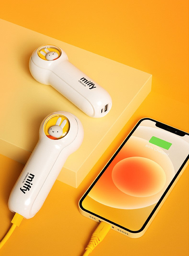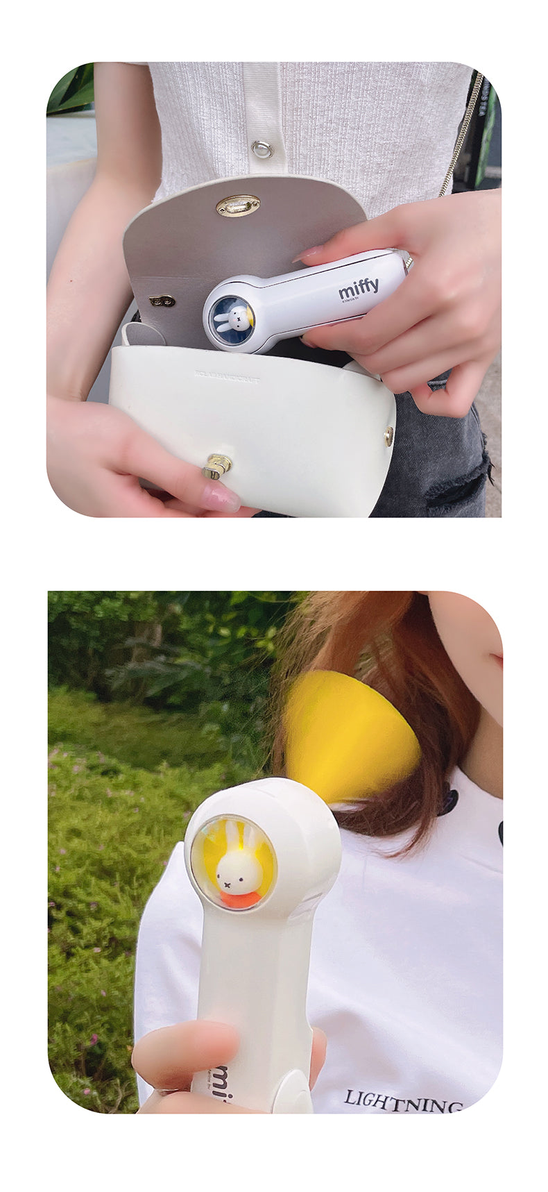 Miffy handheld fan can be charged by computer, laptop or USB power adapter. It only takes 2-3 hours to get full charged. With special soft TPE material, the fan blades are very safe. If you accidentally touch the rotating blades, the soft blades will automatically stop and keep you safe.