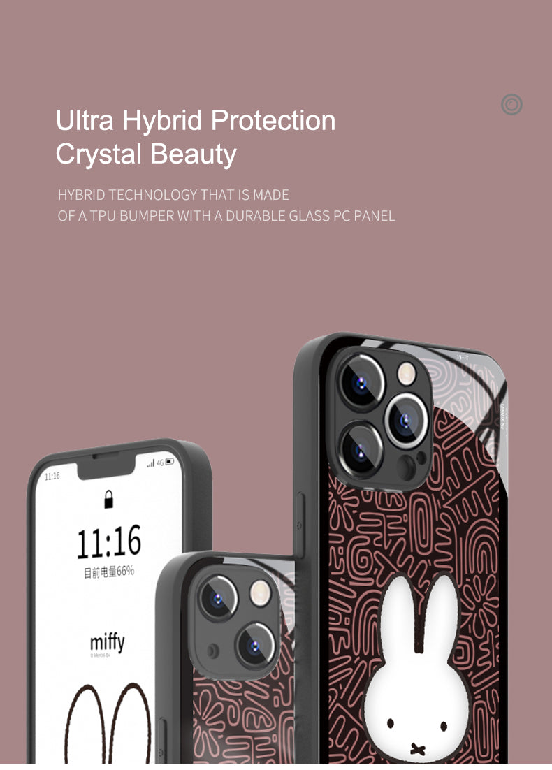 MIPOW X Miffy Premium hybrid Case for iPhone 12/13 Series. Select iPhone 12, 12 Pro, Pro Max,  iPhone 13, Pro, & Pro Max.  One-piece hybrid case combines shock-absorbing rubber feel bumper and anti-scratch flexible Glass PC Panel, slim profile and snug-fit with non-slip grip, flexible and durable, sleek yet lightweight. Select from 100s Beautiful Graphic Printing designs