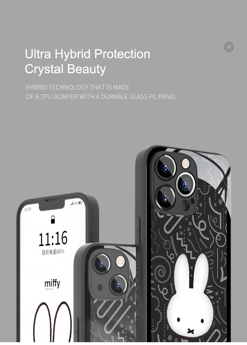 MIPOW X Miffy Premium hybrid Case for iPhone 12/13 Series. Select iPhone 12, 12 Pro, Pro Max,  iPhone 13, Pro, & Pro Max.  One-piece hybrid case combines shock-absorbing rubber feel bumper and anti-scratch flexible Glass PC Panel, slim profile and snug-fit with non-slip grip, flexible and durable, sleek yet lightweight. Select from 100s Beautiful Graphic Printing designs