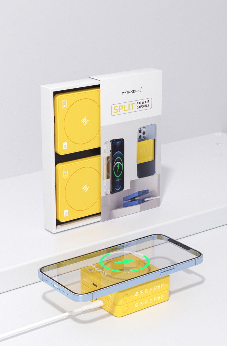 Split 2 Capsules, Each MagSafe Power Capsule comes with 5000 mAh Capacity. Charge different devices with cable or wireless charging.