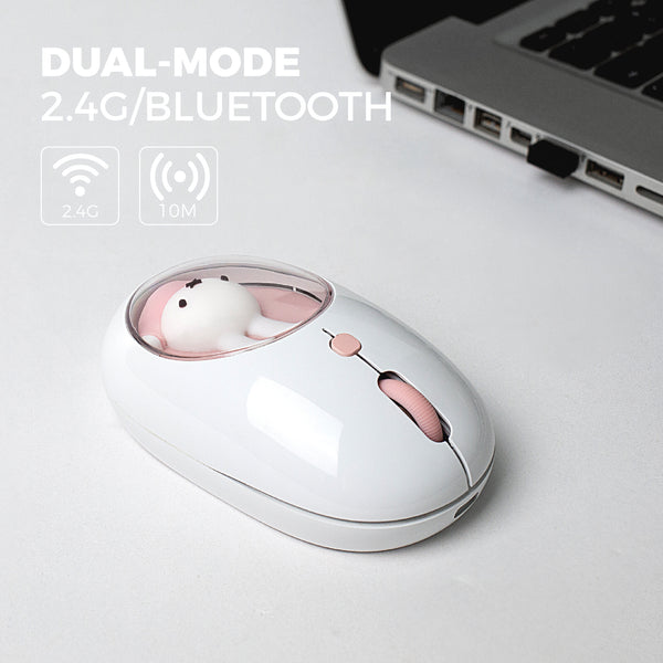 The MIFFY Dual Mode Wireless Mouse combines charming design with practical dual connectivity. Effortlessly switch between Bluetooth 5.0 and 2.4GHz wireless for smooth use across laptops, tablets, and desktops. With adjustable DPI for precise control, silent click buttons, and an ergonomic, lightweight design, it’s ideal for work, study, or travel. A perfect blend of cuteness and functionality to brighten any workspace. — all with the charm of MIFFY.