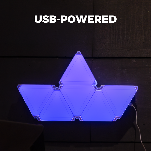 PLAYBULB TriArt is an 6-piece modular RGB triangle panel light set featuring App control, music sync, dynamic effects, and DIY creative layouts. Perfect for gaming rooms, bedrooms, walls, and home décor, TriArt brings colorful ambient lighting with customizable shapes, USB power, and seamless control across PLAYBULB smart lights.