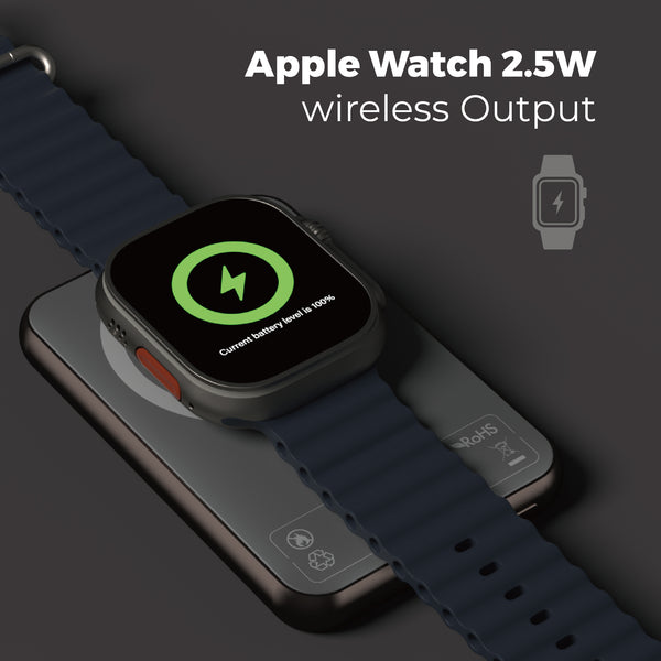 Built-in 2.5W magnetic Apple Watch charging module provides stable, safe, and fast charging for all Apple Watch models—perfect for travel, office, or bedside use.