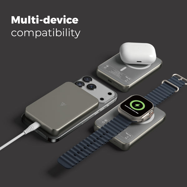 3-in-1 High-Capacity Fast Charging:Combines MagSafe 15W wireless, Apple Watch 2.5W, and USB-C 20W output for multi-device charging. The 10,000mAh capacity delivers extended power for business, travel, and outdoor adventures.